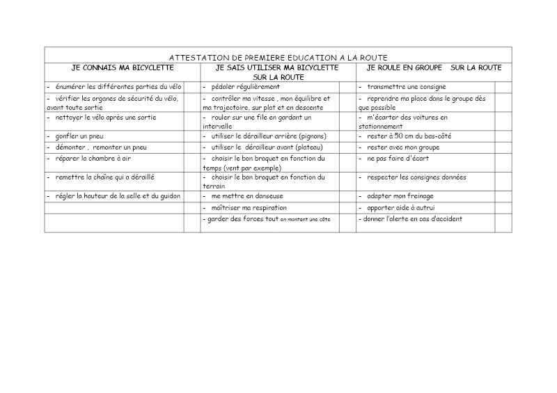 • le SAVOIR ROULER 3 blocs : savoir pédaler, savoir rouler, savoir circuler