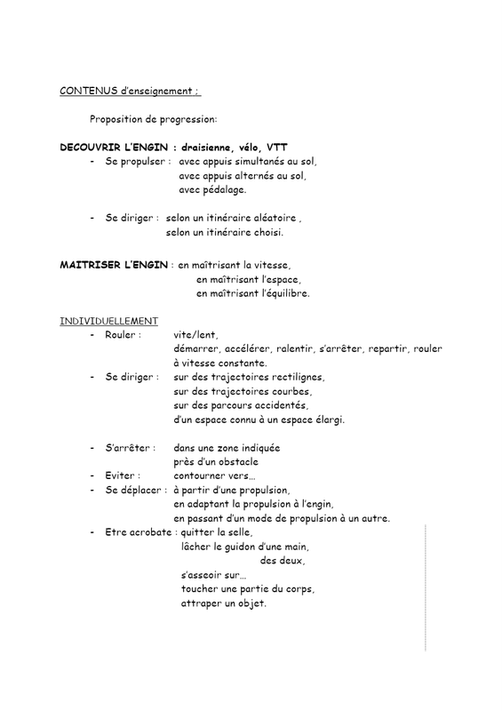 Vous trouverez ci-après des contenus d'enseignement qui peuvent vous aider à construire votre séquence dans une activité sportive voulue.