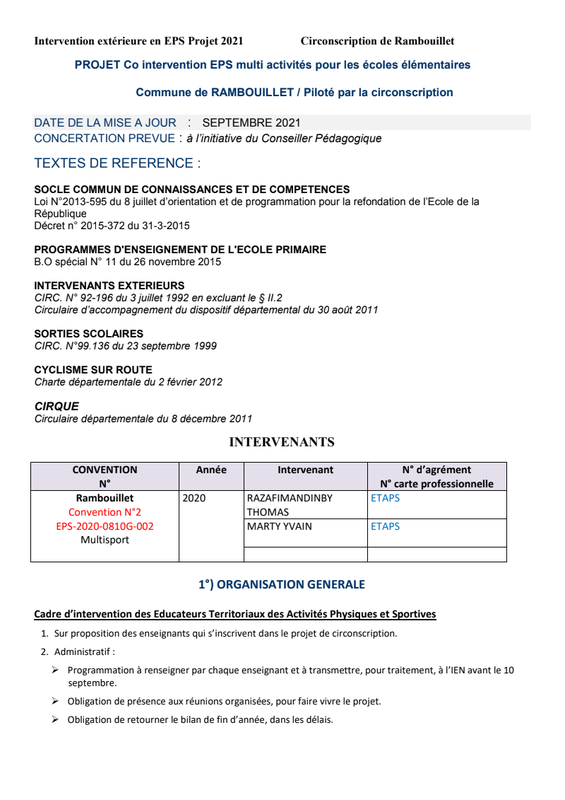 Projet Pédagogique Eps Multiactivite Rambouilllet 2020